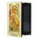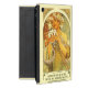 Anpassning av en art nouveaulithograoh av Alphonse Mucha berättigade blomman, 1897. Biblisk text från gospelet av den Matthew 6:28,29, var Jesus sade till hans lärjungar, "betrakta liljarna av fält, hur de växer; de sliter inte, neither gör dem snurrandet. Och yet mig var något att säga unto dig, den även Solomon sammanlagt hans härlighet inte ställa i ordning något liknande en av dessa.", Den blom- designen med liljan blommar, och den härliga kvinnan i art nouveaustil skuggar in av guld, gult och grönt. Konstreproduktion med inspiration och uppmuntran från den kristna tropresentaffären.