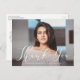 Enkel, stilren examens tacksamhets vykort med examenkandidatens horisontella foto med "Tack" i en elegant vit manus överlägg. Personifiera framsidan av examens tacksamhets vykort genom att lägga till examenkandidatens namn och examensår. Vykortet vänder för att visa din returadress och valfritt meddelande. Foto tack vykortet är perfekt för både gymnasiet och högskoleexaminerade.