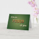 Ord är så stolt över dig med ord Proud i guld mot en grönt bakgrund. Insidan har anpassade som säger Grattisar, och det bästa av tur i era framtida strävanden.