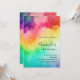 Födelsedagsinbjudan med en vattenfärgsbakgrund med färg av regnbågen.