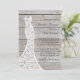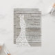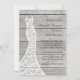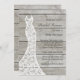 En romantisk klänning i snöre bröllop accentuerar i inbjudningskort för möhippan på en luddbordsbakgrund. Detta koordinerar perfekt med land, rustik, boho eller lada bröllop. Bakgrundens ton liknar drivträ, så detta fungerar lika bra med destination- eller strandbröllop. Rulla ner för att se samordningsposter.