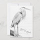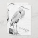 Det här Save the Date-meddelandet från bröllop innehåller en pennskiss stil teckning av en vacker Underbar blå Heron som står på sten och bortser från vatten. Allt är gjort i grått, vitt och blått. ^