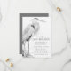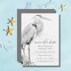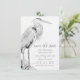 Det här Save the Date-meddelandet från bröllop innehåller en pennskiss stil teckning av en vacker Underbar blå Heron som står på sten och bortser från vatten. - av MI Bröllop-design
