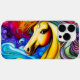 Vacker Palomino-häst med färgstark mane på en snabb regnbågsbakgrund. Ett digitalt telefonfodral med AI-rendering av software.