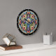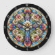 Den här slående väggklockan har en vacker glasdesign i nedfläckad som är centrerad kring ett kor, försedd med en mängd färgstarka, vibrerande blommor och berikande löv mönster. De briljanta nyheterna och den detaljerade konsten skapar en upplyftande och fängslande biet, perfekt för att tillföra en gnutta tro och skönhet till vilket rum som helst. Redigera färg om klocknumren i Design verktyg till det färger du vill ha.