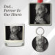 En nyckelkedja för anpassningsbar och personlig far med namn och utrymme för ett foto.