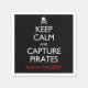 Rolig pirattema design har en gammal piratflagga bild av en dödskalle och korsade ben tillsammans med ett tag på de gamla brittiska Bevara lugnet affischer. Den här säger Bevara lugnet och fånga pirater - perfekt för Halloween, Tala som en pirat dag eller någon pirat tema födelsedagsfest eller annan pirat händelse.