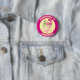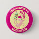 Ett lycklig gris på en födelsedagsknapp eller ett märke. Användan "Anpassa den här mallen" om du vill ändra texten "BEHÖRIGHET TILL GRIS OUT GRANTED" och skapa ett unikt, anpassat objekt. Med ett glansigt gris, under en lagrar-tårta som fastnar i grönt och som är täckt med rosa ljus.