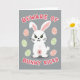 This design shows a plump white bunny centered on a neutral gray background 🐰, staring out with angled green eyes, furrowed brows, and a tiny-toothed snarl that feels like a teasing warning between close friends. Soft peach and pale green egg shapes sit to either side, adding a gentle spring touch 🌷 that contrasts with the bunny’s tough pose. At the top, the words “BEWARE OF” appear in red all-caps lettering with a thin white outline, set in a straight line above the ears. At the bottom, “BUNNY KICKS” is placed in matching red all-caps with the same white outline, stretching beneath the bunny’s feet. The mix of sweet egg colors and the bunny’s stern face reads like a joking challenge, as if the character is trying to impress someone with mock bravery. A small “X” mark sits on the bunny’s belly, like a cheeky badge of toughness. The oval eggs show simple patterns in pale green and peach, framing the bunny against the flat gray field.
