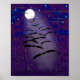Bwitchtimmen är nära, fläckig roligt med fladdermöss, vit fullt, stjärnor och träd silhuetter på detta poster tryck.