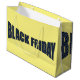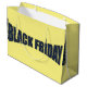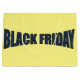 Denna feta mosaikgrafik, med den välkända frasen "Black Fredag", är designad i ett område, vinge mönster, med vita prickar, mot svart på en gult, bakgrund.