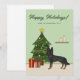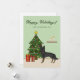 Desteis ursprungliga tecknad illustrerar en svart tysk shepherd-hund i färg. Hund står vid ett festligt Julgran med röda prydnadsföremål och gult, en vit pärlträdgård och en gult stjärna på träd. Det finns också två inslagna presenter vid träd och bakom hund finns det en bruna hyllor med två ljus. Golv färg är beige och färg är ljust grönt. Det finns också två anpassningsbara textområden.