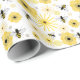 Slå in papper som presenterar ett mönster av bin och blommor med en gult och en svart färg, schemalägga.