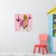 Vår vackra Bianca med blonda hår, klädd i vitt och ro. Bianca är försedd med juveler och har en dammig ro-fjädervilt fläkt. Burgundi chandeliers på ljus rosa bakgrund.