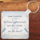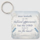 En bibelvers från 1 Samuel 16:7 som lyder: "Man tittar på utsidan, men LORD tittar på hjärtat." (KJV) En uppmuntrande vers som påminner oss om att det som finns på insidan är viktigare än det som finns på utsidan. Konstruktionsbakgrunden är en vacker vattenfärg för blommigten i mjuka blues och beiges i en nyckelkedja.