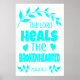 Herren Heals The Brokenhearted Poster på Archival Heavyweight Papper (Matte) i turkos på vitt, vilket framkallar en känsla av andlig resonans.