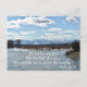 Snötäckta berg framhäver detta kristna Bibelspråk Kort av Psalm 46:10. Detta är ett perfekt vykort för att uppmuntra dina vänner att lita på Herren. De vackra snötäckta bergen finns på framsidan och det finns gott om utrymme för dig att skriva ett personligt meddelande på baksidan.