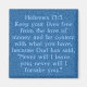 Den här punkten inspireras av bibeln "Herde Hebrews 13:5" "Behålla ditt liv fritt från kärlek och vara innehåll med det du har, för Gud har sagt: "Aldrig kommer jag att lämna dig; aldrig kommer jag att avstå från dig". Det skulle vara en trevlig uppmuntrande magnet eller gåva till alla kristna.