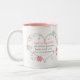 Mugg med typografi Bible versade på den, "Trust in the Lord with all thine eart and lean not unto thine own understanding." - Proverbs 3:5. Feminin med blommor och löv i vattenfärgen stil.