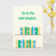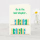 Det här hälsningskortet innehåller en rad bokar och frasen "På till nästa kapitel..." skriven i grönt i ett teckensnitt för roligt. Anpassa den inre texten eller ta bort om du vill lämna tom. Underbar för engelska lärare, grundskolelärare, huvudmän osv.