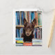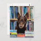 Ett annat sött foto i den antropomorfiska vykortsserien: Allys Äventyr, Australian Kelpie hund. Här är hon klädd som bibliotekarie med glasögon, omgiven av bokar. Notera även hennes urval av läs- och skrivmaterial. Hon är en smart kaka! Foto av Louise Docker Browse the Ally Series here com com