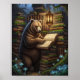 En häpnadsväckande fantasi som illustrerar en viskskog som fungerar som bibliotekarie i ett magiskt skogar. Innerst av gamla, mest täckta staplar av bokar och upplysta av en glanslang och en bioluminiscent svamp, visas björnen med tanke på att den läser ett öppet bok. Denna mycket detaljerade och spännande målning är perfekt för alla som kärlek fantasi, storberättande och unika konst som firar bokar och naturens .