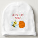 Denna hatt presenterar en lycklig honungbi- och basketdesign. Håll din unge head för att värme med denna gulliga bebishatt.
