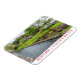 En vacker syn på byn Bibury i Cotswests i England tryckt på en kylmagnet i souvenir.