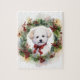 Bichon Frise God Jul Utandning Festive Valp Pussel