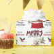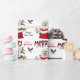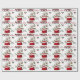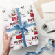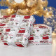 Det upprepade mönster på denna söta julomslutning papper är en bild av en vit Bichon Frise-hund som pendlar ut från en röd och vit Helgdag presentsäck. Bakom honom ligger en sprit av grå och röda bär. En röd och svart bullfinkfågel kommer snart att landa. Stiliserad röd och svart buffelpläterad text säger GOD JUL och "Gott nytt år" är mörk grönt. Din egen namnteckning finns i två fält för att du ska kunna anpassa dig.