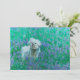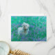 Falt kort med handritad konst av en bichon frise i ett fält av blå lupiner. Konstverk: Färgpenna. Upphovsrätt: Dominic A. White. Alla rättigheter förbehållna.