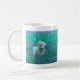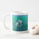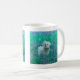 Mugg med hand plockade-teckningar av en bichonsaft i fält av blåmotorredskap. Bild: Färg blyertspenna. Upphovsrätt: Dominic A. White. Alla rättigheter förbehållna.
