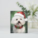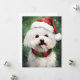 Färgfull och glatt juldesign med en Bichon Frise som bär en julhatt.