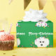 Bichon Frise tänder jul som slår in papper Presentpapper