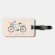 Den här eleganten, snyggten och trendigets bagagemärke innehåller ett citat om livet. Det står "Livet är en vacker tur." illustrerad med en blå cykel som har en basket som innehåller blommor som drar till sig fjärilar. Ett positivt perspektiv på livet och ett vackert citat även för cyklister! Färg palett med pastellblå rosa, grått och brun med färg som kan bytas ut mot bakgrund.