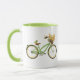 Bicycle With Bird and Flower Basket Green Yellow Mugg