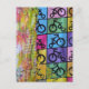 Bicycles colorful mixed media collage vykort