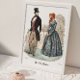 En elegant klädd man och kvinna i Biedermeier-klänningen går i en trädgård. Från 1800-talets tyska mode-tidning "Pariser Moden".