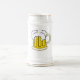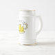 Ein schönes Cartoonbierbild schmückt diesen Bierkrug, der weiß/golden ist.