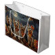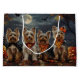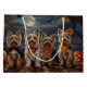 Släpp upp spookandan med den här eerie Halloween-designen med en hundar-förpackning under en mörk, månbelyst himmel, omgiven av flygande fladdermus och glödande pumpor. Perfekt för dem som kärlek en aning skrämmande roligt med sina hårigets vänner!