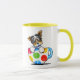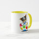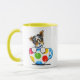 Klicka på "Läs mer" om du vill ändra bakgrundsbilden färg.Originalteckningar med Andie av Off-Leash Art™ av en Biewer Yorkie-valp som söker ut från en polka dot mugg.