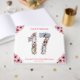 Skapa en sjuttonde födelsedagseftermiddag med sex foton i stort antal sjutton. Dekorerad med vackra och vackra blommor av rosa och grönt. Underbar 17:e födelsedagspresent till flickor. Personlig nummer 17 fotokollage för en unik och mycket speciell produkt.