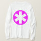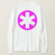 En stor asterisk i vitt på färgadens bakgrund. En snygg, fetstilt design i sig själv eller kan anpassas ytterligare. Observera att konstruktionen också upprepas på baksidan. Du kan dock ta bort någon av formgivningarna om du vill. Den här skjortan är fullt anpassade.