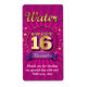 Här är en perfekt som ska ge gästerna en flaska i vatten eller andra tjänster som ett speciellt tack. Sweet sixteen tack påminner om en konsert eller cirkusposter. En medallion omsluter den gyllene orden "Sweet 16"-slingan av en rosa sprängning bakgrunden. Ord "Vatten" står ovan och födelsedagstjuvens namn står under på den ljusa lilan. Lägg till ett speciellt meddelande nedan. Gör en vattenflaska till en roligt och användbar fortsättning. Tillgängligt med matchande produkter. com