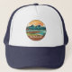 Stor Bear hand plockade illustration med kanot, tält och berg i bakgrunden. Perfekt för alla som kärlek att besöka Big Bear Sjö.