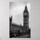 Poster utskrift av en svartvit bild av den ikoniska Big Ben-klocka torn och svarta taxi-hytter i centrala London, huvudstaden i England. Underbar dekoration på väggen!