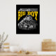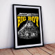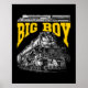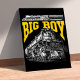 Supporting the main image is the strong, structured “BIG BOY” title rendered in vivid athletic gold. Above it, a smaller side-profile silhouette of the locomotive and tender offers perspective on the scale of this mechanical titan. A clean footer anchors the design with historical reference to its class and service years from 1941 to 1959. The composition blends raw industrial might with a crisp graphic layout, capturing the spirit of the “King of Steam” in all its commanding presence.