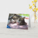 Budskapet i kortet säger: "Hoppas att du hinner slappna av och ha lite roligt på din speciella dag. Grattis på födelsedagen" Det här kortet har en vacker tabb vid namn Big Boy som gungar ner på sin sida på en komfy handduk. Hans lilla rosa näsa, vita tassar och sömnig ögon gör detta till ett underbart kort för varje kattälskare.