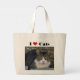 Den här jumbo tote säger: "I Kärlek (hjärta) Cats!" Det visar ett foto av en katt vid namn Big Boy. Big Boy är en grått- strimlad katt med grönt ögon, vit tassar, vit bröstkorg och vit runt munnen och kyld näsa. En stilig katt och en perfekt för alla dina behov.