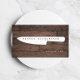 En överdimensionerad, grafisk, vit kock i knivar innehåller ditt namn eller ditt företag namn för en logotyp som fångar öga på detta moderna affärskort. Bakgrunden är en rustik, brun skogstrå struktur. Perfekter för personkutsar, catering företag, restauranger, lastbilar för livsmedel, livsmedelsförfattare m.m.! © 1201AM-KREATIV